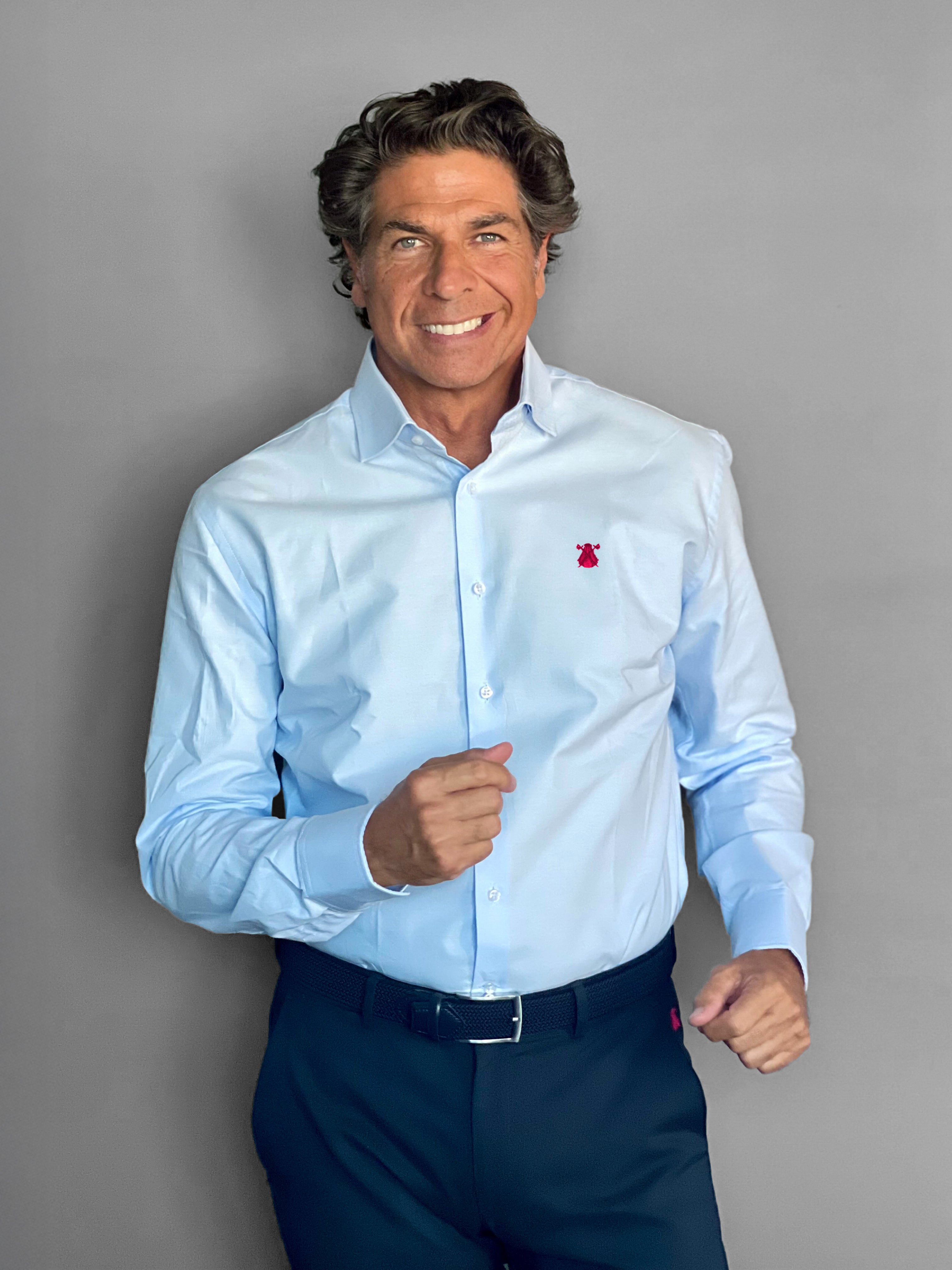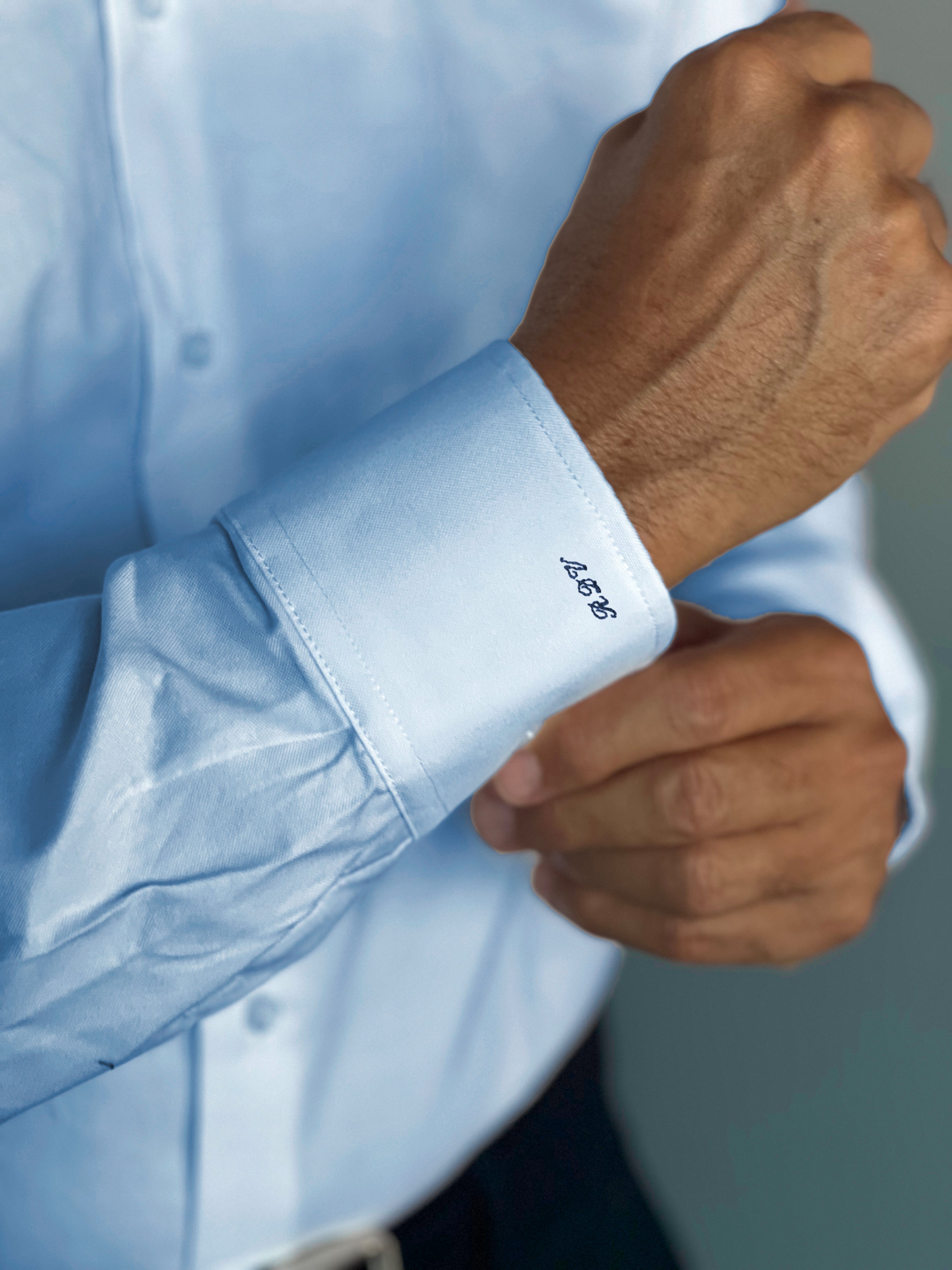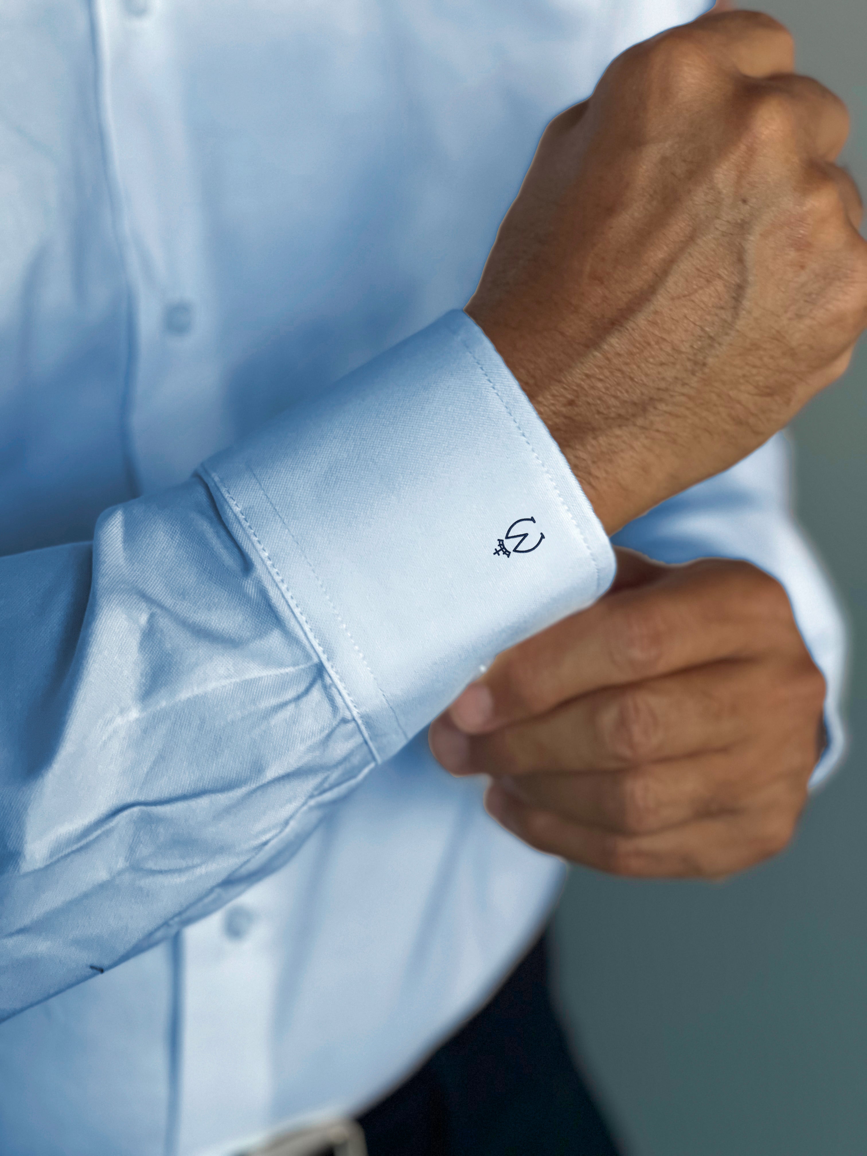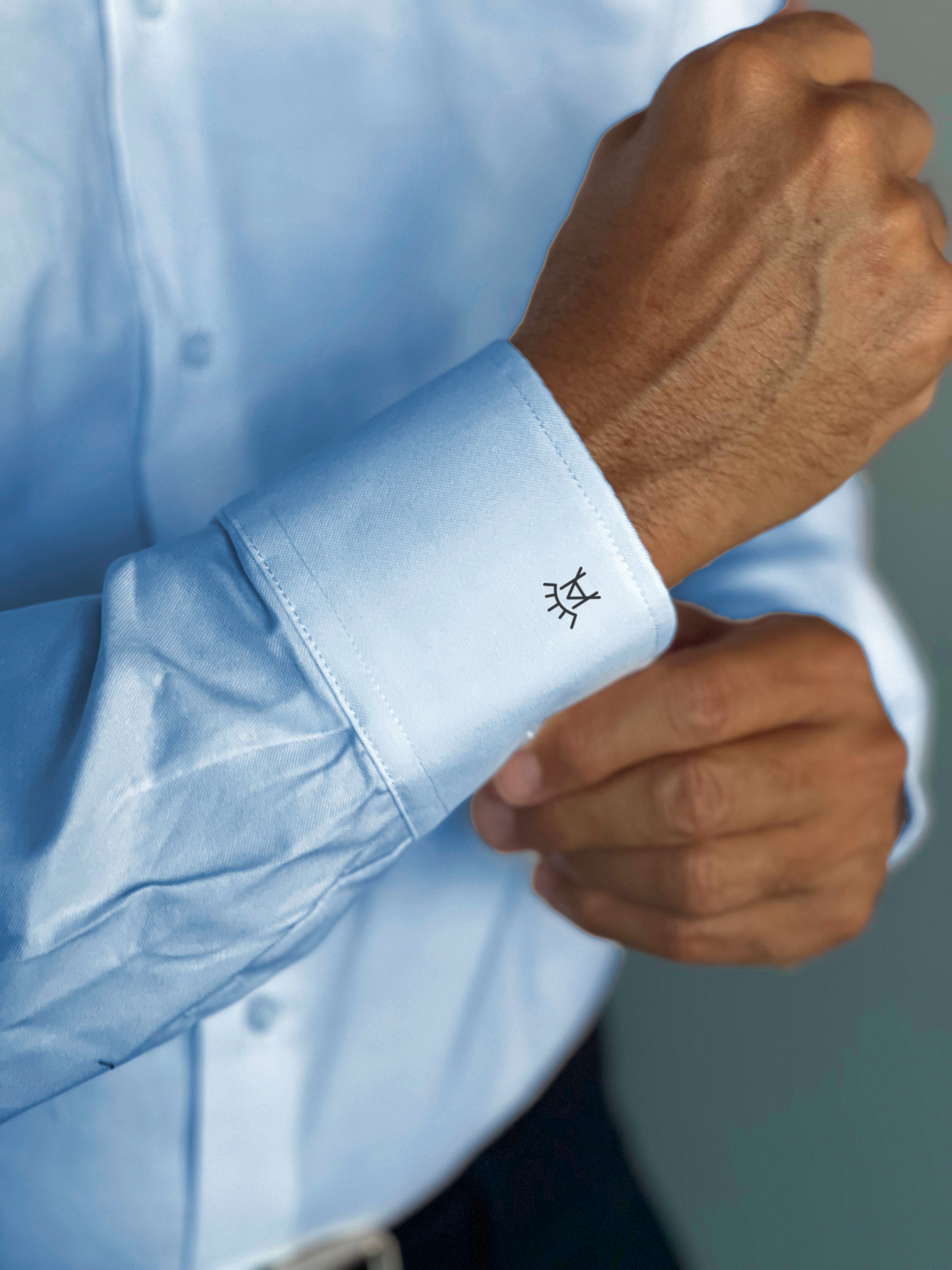 Camisa Hombre Azul oxford azul claro, cuello italiano.